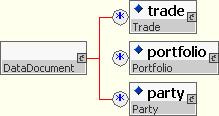 The root element contains three elements, trades, portfolios and parties. Portfolios contain only trade references, if the trades themselves need to be included in the document then the trades can be included within the root element.