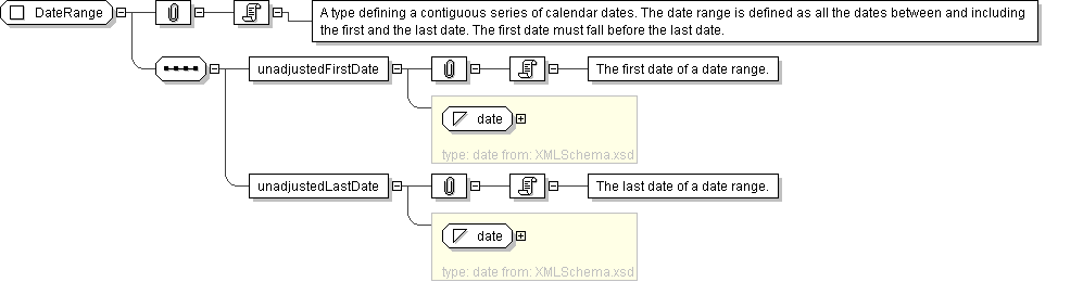| Documentation | A type defining a contiguous series of calendar dates. The date range is defined as all the dates between and including the first and the last date. The first date must fall before the last date. |