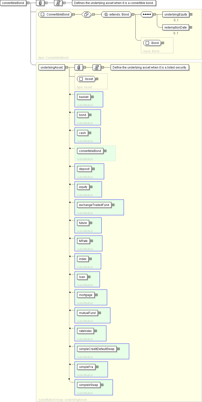 <xsd:element name="convertibleBond" type=" ConvertibleBond " substitutionGroup="underlyingAsset"/>