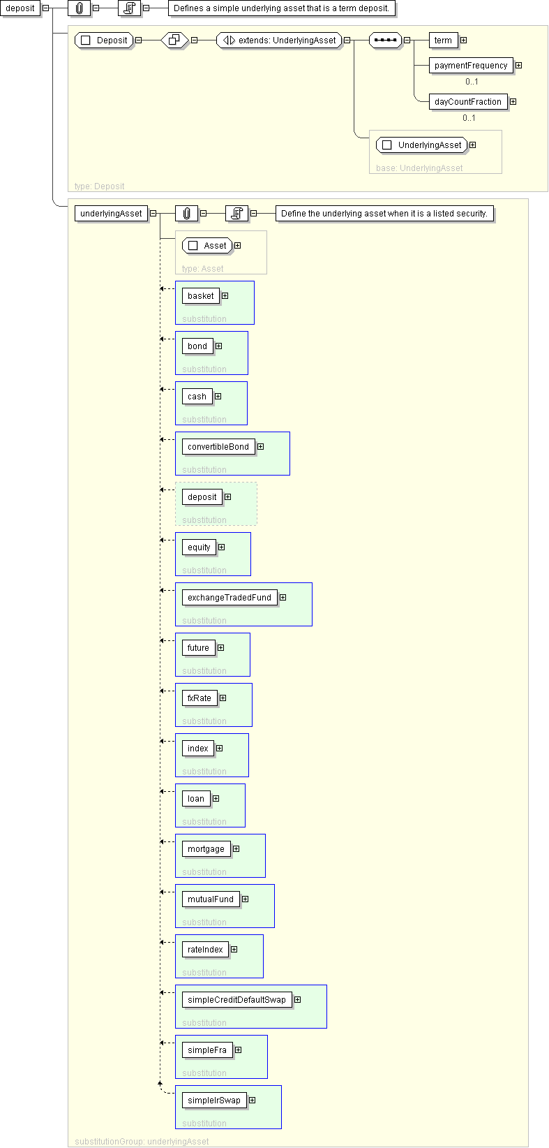 <xsd:element name="deposit" type=" Deposit " substitutionGroup="underlyingAsset"/>