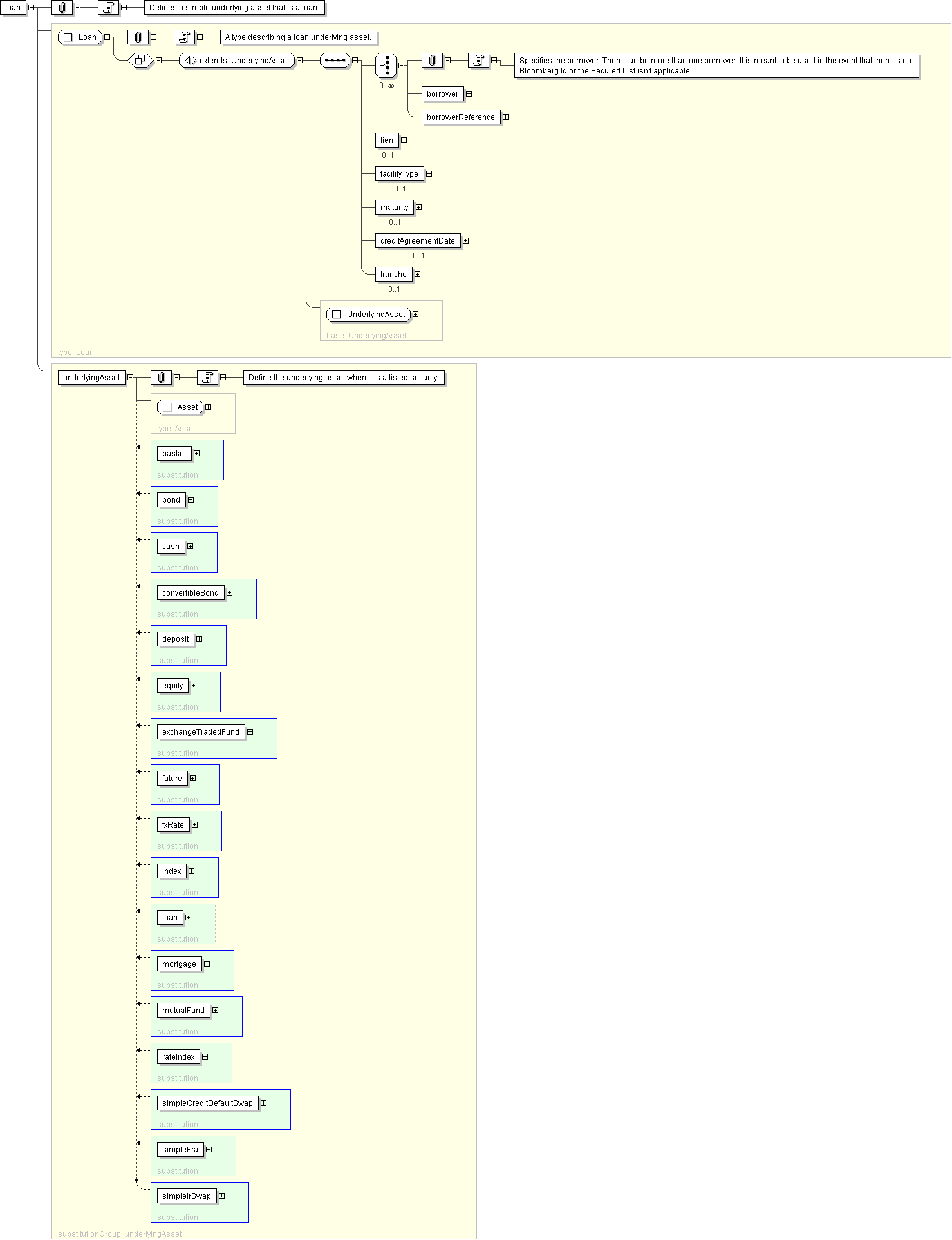 <xsd:element name="loan" type=" Loan " substitutionGroup="underlyingAsset"/>