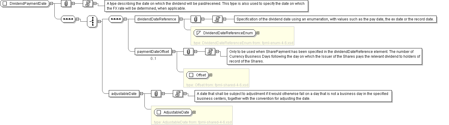 | Documentation | A type describing the date on which the dividend will be paid/received. This type is also used to specify the date on which the FX rate will be determined, when applicable. |
