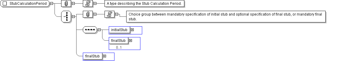 'Choice group between mandatory specification of initial stub and optional specification of final stub, or mandatory final stub.'