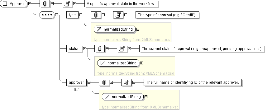 'The current state of approval (.e.g preapproved, pending approval, etc.)'