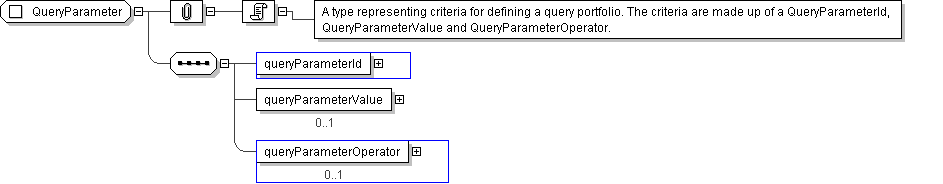 | Documentation | A type representing criteria for defining a query portfolio. The criteria are made up of a QueryParameterId, QueryParameterValue and QueryParameterOperator. |