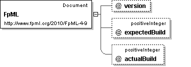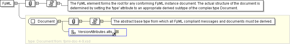 | Documentation | The FpML element forms the root for any conforming FpML instance document. The actual structure of the document is determined by setting the 'type' attribute to an appropriate derived subtype of the complex type Document. |