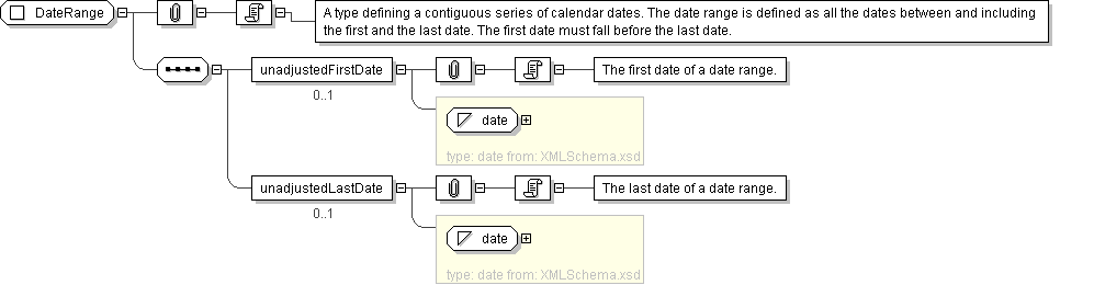 | Documentation | A type defining a contiguous series of calendar dates. The date range is defined as all the dates between and including the first and the last date. The first date must fall before the last date. |