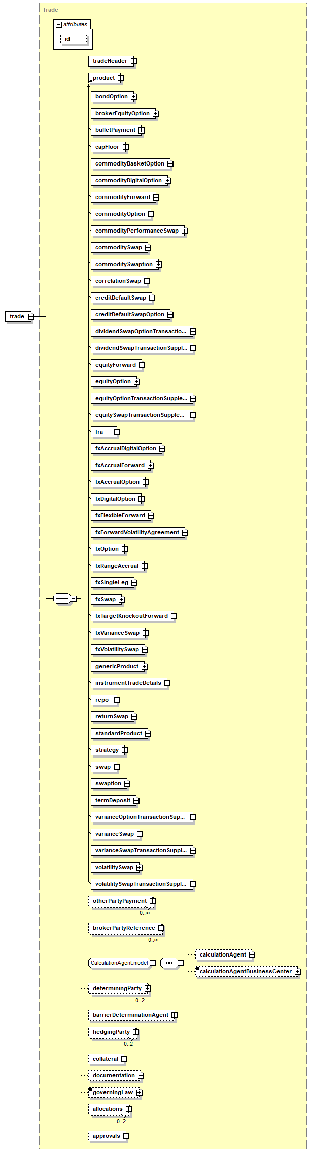 bondOption, brokerEquityOption, bulletPayment, capFloor, commodityBasketOption, commodityDigitalOption, commodityForward, commodityOption, commodityPerformanceSwap, commoditySwap, commoditySwaption, correlationSwap, creditDefaultSwap, creditDefaultSwapOption, dividendSwapOptionTransactionSupplement, dividendSwapTransactionSupplement, equityForward, equityOption, equityOptionTransactionSupplement, equitySwapTransactionSupplement, fra, fxAccrualDigitalOption, fxAccrualForward, fxAccrualOption, fxDigitalOption, fxFlexibleForward, fxForwardVolatilityAgreement, fxOption, fxRangeAccrual, fxSingleLeg, fxSwap, fxTargetKnockoutForward, fxVarianceSwap, fxVolatilitySwap, genericProduct, instrumentTradeDetails, repo, returnSwap, standardProduct, strategy, swap, swaption, termDeposit, varianceOptionTransactionSupplement, varianceSwap, varianceSwapTransactionSupplement, volatilitySwap, volatilitySwapTransactionSupplement
