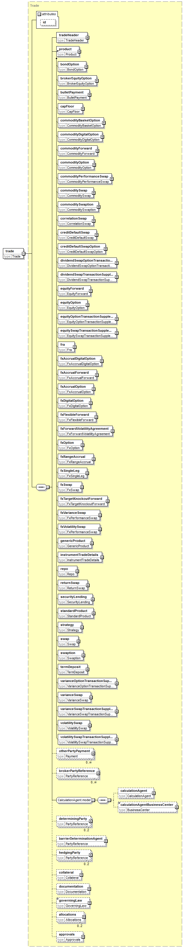 bondOption, brokerEquityOption, bulletPayment, capFloor, commodityBasketOption, commodityDigitalOption, commodityForward, commodityOption, commodityPerformanceSwap, commoditySwap, commoditySwaption, correlationSwap, creditDefaultSwap, creditDefaultSwapOption, dividendSwapOptionTransactionSupplement, dividendSwapTransactionSupplement, equityForward, equityOption, equityOptionTransactionSupplement, equitySwapTransactionSupplement, fra, fxAccrualDigitalOption, fxAccrualForward, fxAccrualOption, fxDigitalOption, fxFlexibleForward, fxForwardVolatilityAgreement, fxOption, fxRangeAccrual, fxSingleLeg, fxSwap, fxTargetKnockoutForward, fxVarianceSwap, fxVolatilitySwap, genericProduct, instrumentTradeDetails, repo, returnSwap, securityLending, standardProduct, strategy, swap, swaption, termDeposit, varianceOptionTransactionSupplement, varianceSwap, varianceSwapTransactionSupplement, volatilitySwap, volatilitySwapTransactionSupplement