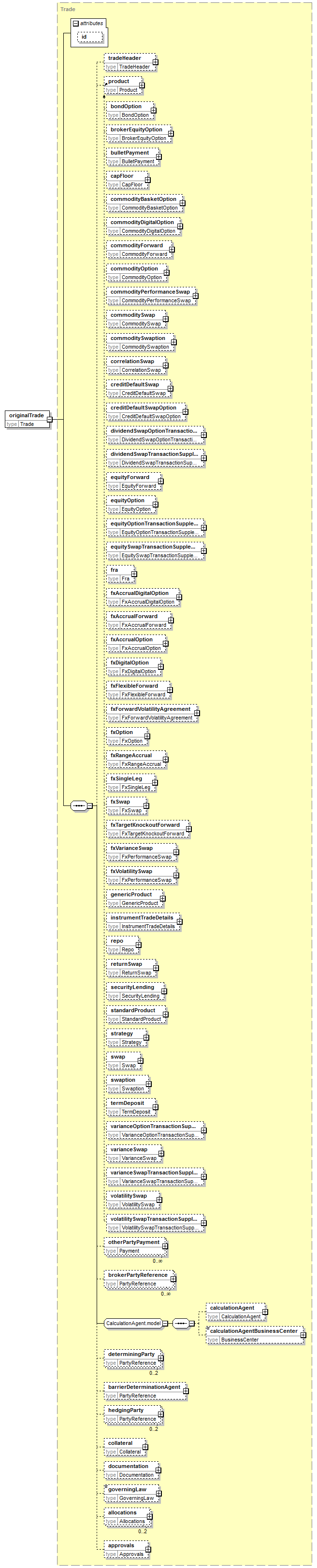bondOption, brokerEquityOption, bulletPayment, capFloor, commodityBasketOption, commodityDigitalOption, commodityForward, commodityOption, commodityPerformanceSwap, commoditySwap, commoditySwaption, correlationSwap, creditDefaultSwap, creditDefaultSwapOption, dividendSwapOptionTransactionSupplement, dividendSwapTransactionSupplement, equityForward, equityOption, equityOptionTransactionSupplement, equitySwapTransactionSupplement, fra, fxAccrualDigitalOption, fxAccrualForward, fxAccrualOption, fxDigitalOption, fxFlexibleForward, fxForwardVolatilityAgreement, fxOption, fxRangeAccrual, fxSingleLeg, fxSwap, fxTargetKnockoutForward, fxVarianceSwap, fxVolatilitySwap, genericProduct, instrumentTradeDetails, repo, returnSwap, securityLending, standardProduct, strategy, swap, swaption, termDeposit, varianceOptionTransactionSupplement, varianceSwap, varianceSwapTransactionSupplement, volatilitySwap, volatilitySwapTransactionSupplement
