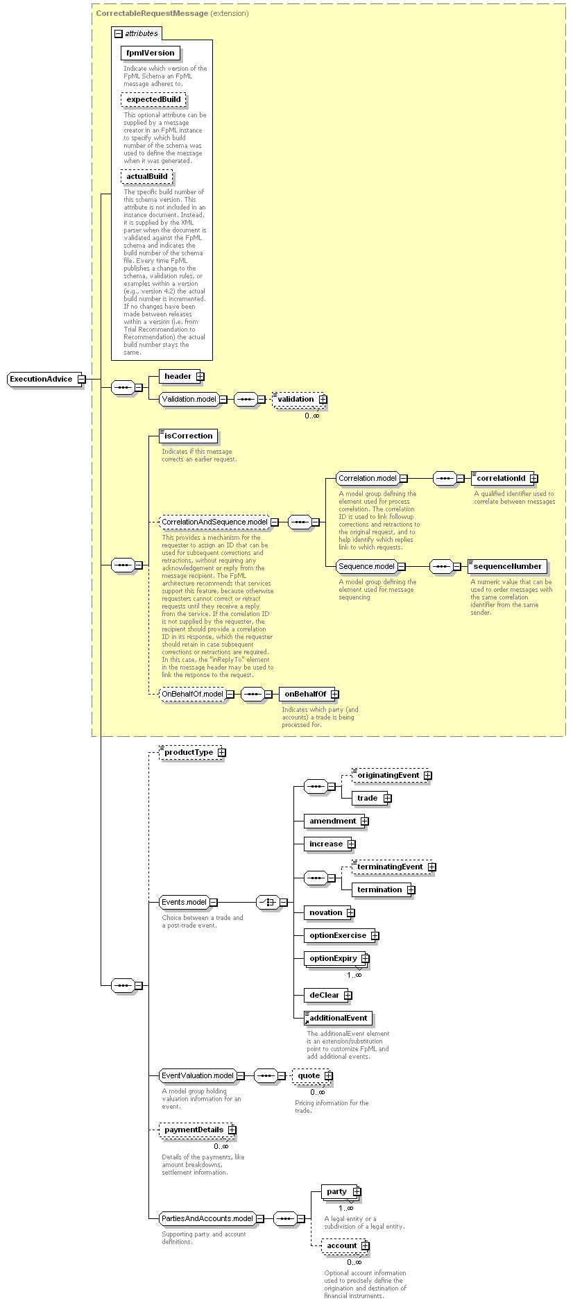 <xsd:complexType name="ExecutionAdvice"> <xsd:complexContent> <xsd:sequence> <!-- added 2010-09 for Option Excercise / Expiry --> </xsd:sequence> </xsd:extension> </xsd:complexContent> </xsd:complexType> |