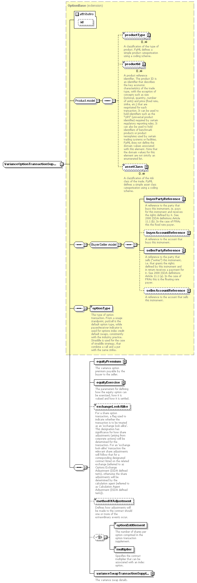 <xsd:complexType name="VarianceOptionTransactionSupplement"> <xsd:complexContent> <xsd:sequence> <xsd:choice minOccurs="0"> </xsd:choice> </xsd:sequence> </xsd:extension> </xsd:complexContent> </xsd:complexType> |