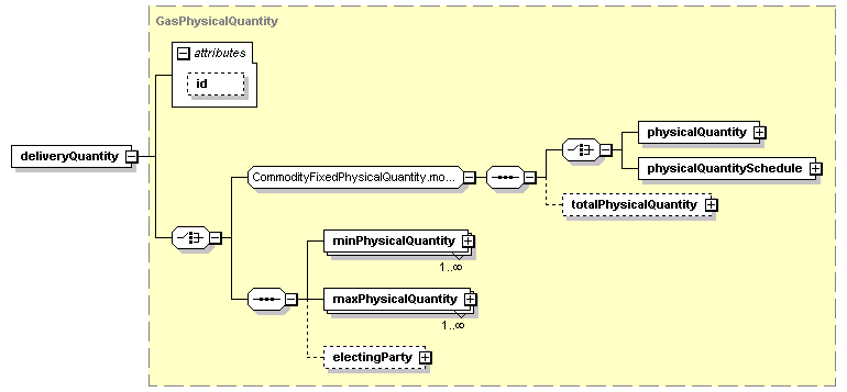 The product representation of physically-settled trades is done within 'coalPhysicalLeg', 'elecricityPhysicalLeg', 'gasPhysicalLeg', 'oilPhysicalLeg' paired with 'fixedLeg' or 'floatingLeg' - see details in the Physical Leg section.