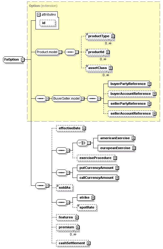 <xsd:complexType name="FxOption"> <xsd:complexContent> <xsd:sequence> <xsd:sequence> <xsd:choice> </xsd:choice> </xsd:sequence> <xsd:sequence> </xsd:sequence> <xsd:sequence> </xsd:sequence> </xsd:sequence> </xsd:extension> </xsd:complexContent> </xsd:complexType> |