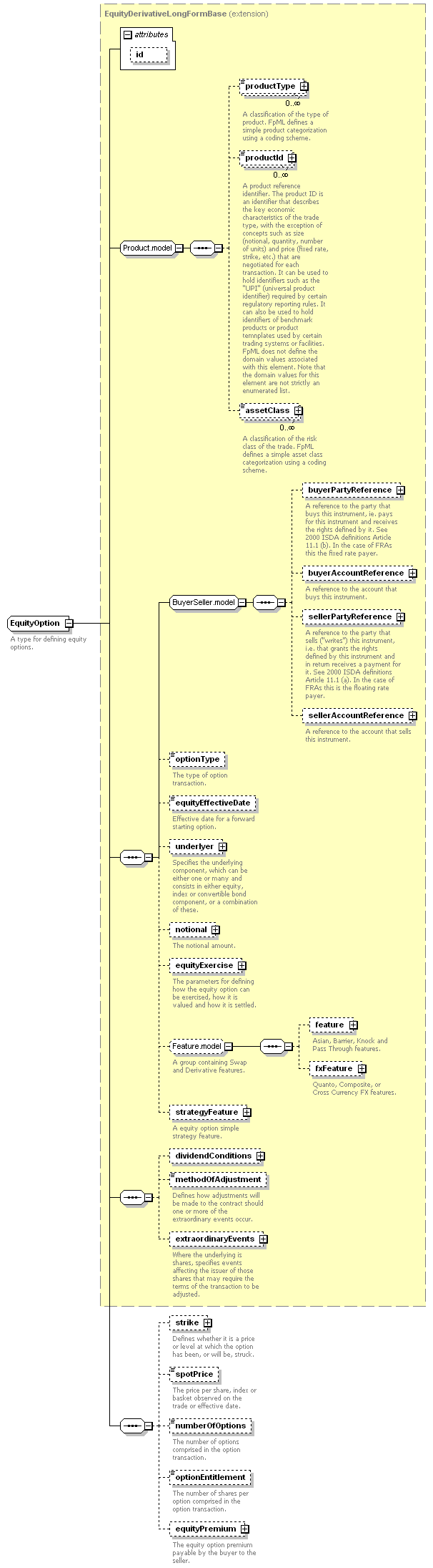 | <xsd:complexType name="EquityOption"> <xsd:complexContent> <xsd:sequence> </xsd:sequence> </xsd:extension> </xsd:complexContent> </xsd:complexType> |