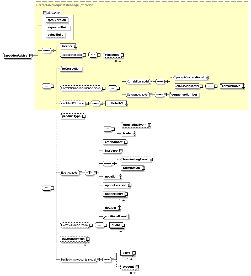 <xsd:complexType name="ExecutionAdvice"> <xsd:complexContent> <xsd:sequence> <!-- added 2010-09 for Option Excercise / Expiry --> </xsd:sequence> </xsd:extension> </xsd:complexContent> </xsd:complexType> |