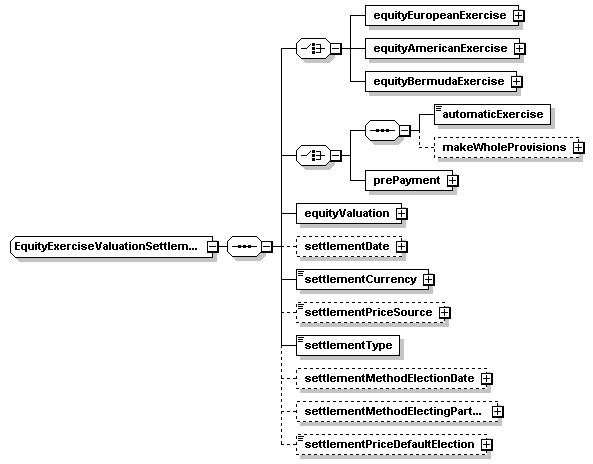 | <xsd:complexType name="EquityExerciseValuationSettlement"> <xsd:sequence> <xsd:choice> </xsd:choice> <xsd:choice> <xsd:sequence> </xsd:sequence> </xsd:choice> <xsd:element minOccurs="0" name="settlementPriceDefaultElection" type="SettlementPriceDefaultElection"/> </xsd:sequence> </xsd:complexType> |