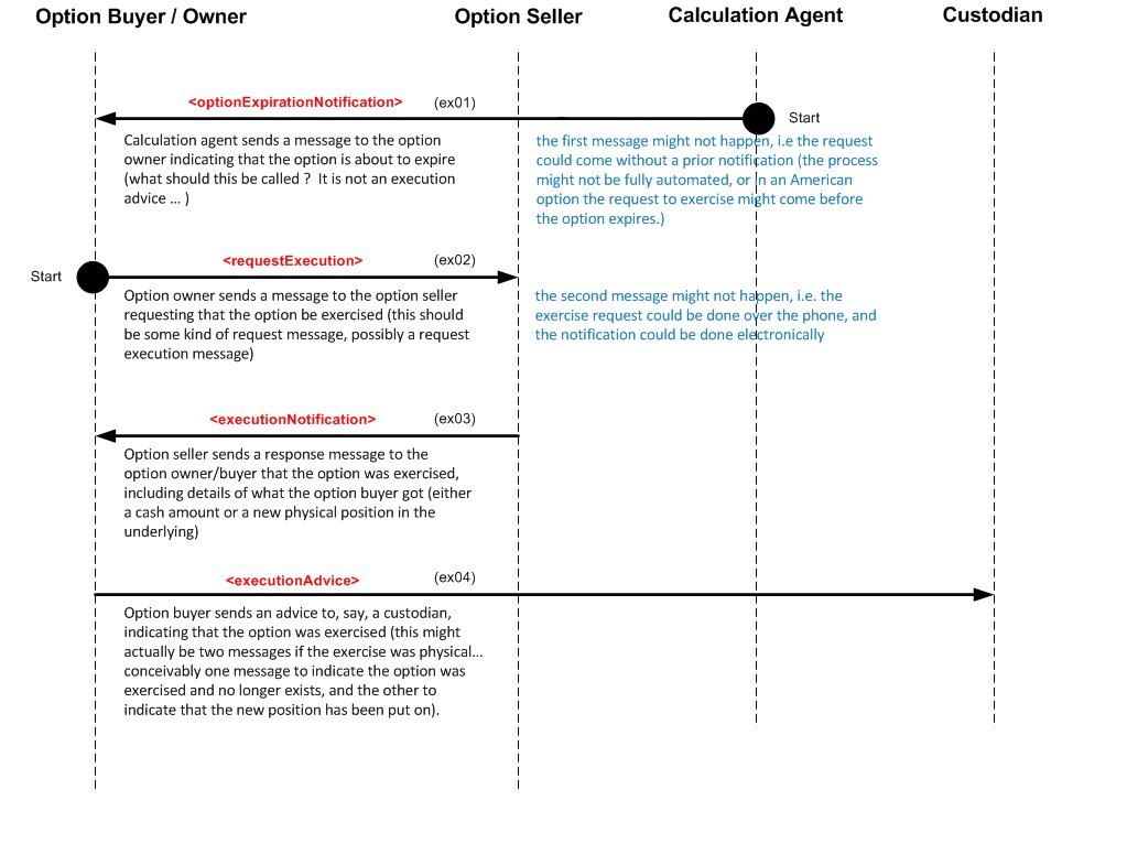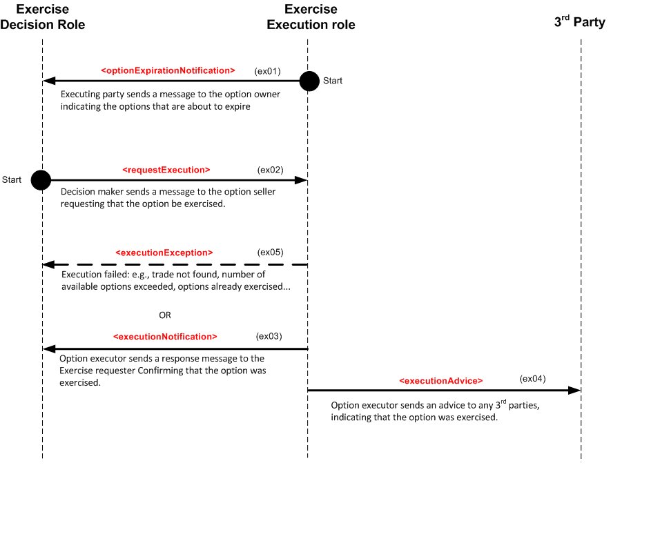 Option exercise and expiry process is supported by FpML. The following messages are used to support the process: