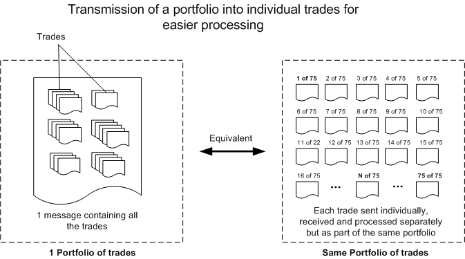 Some DCOs wish to manage the processing of a portfolio in multiple messages. A portfolio may contain thousands of trades and it is not practical to process one huge message. A solution is needed from a processing perspective.