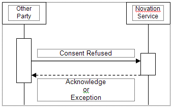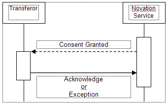 If the receiving party agrees with the novation then they should respond with a ‘NovationConsentGranted’ message. The Transferor or the Transferee may include the details of a payment representing the market value of the transaction.