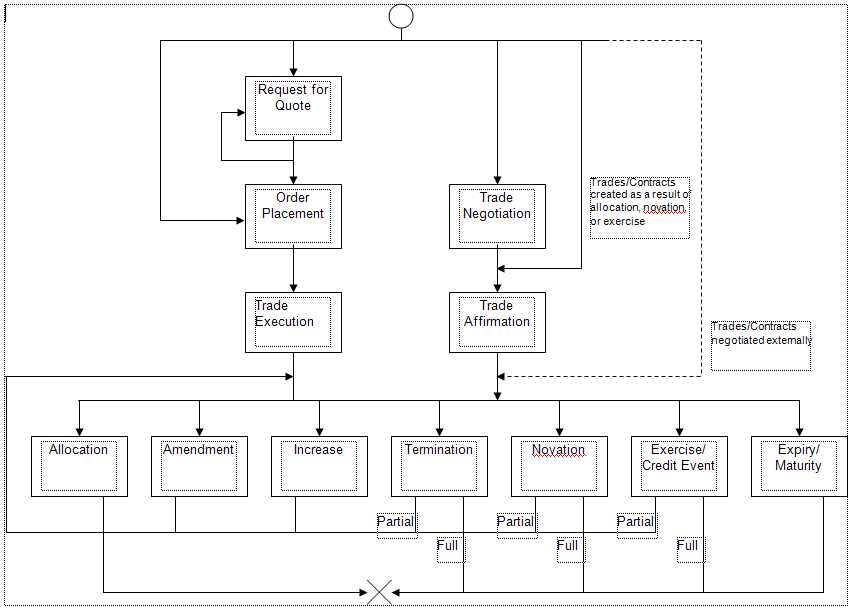Implementation: Most messages will be designed to be able to handle multiple types of events, such as new trades and post-trade events. This allows consistent coverage of a number of post-trade events with a number of business processes.