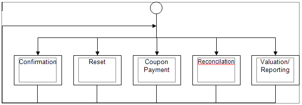This layer specifies the way in which any business process is defined, such that is understood and executable by people and applications. A business process can be defined as a set of interrelated tasks linked to an activity that spans functional boundaries. Business processes have starting points and ending points, and they are repeatable. Examples of business processes in the derivatives domain are the affirmation process, the confirmation process, and the matching process.