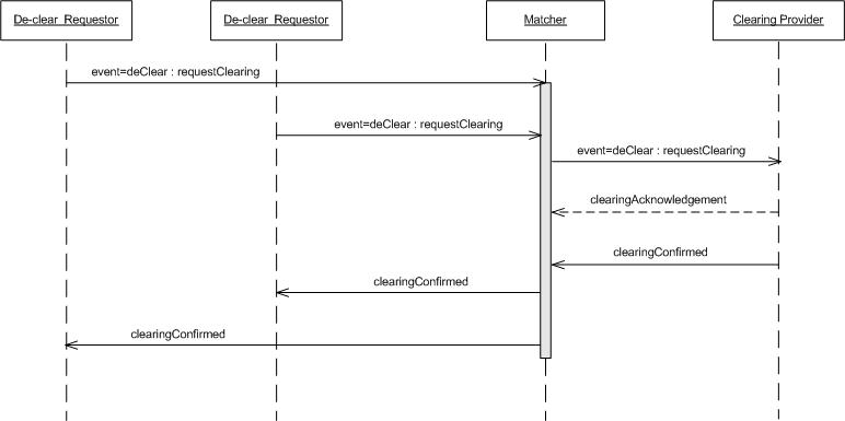 The "clearing" and "deClear" events are provided to support clearing processes.