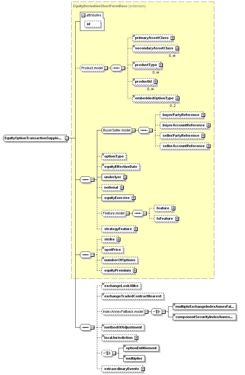 <xsd:complexType name="EquityOptionTransactionSupplement"> <xsd:complexContent> <xsd:sequence> <xsd:choice minOccurs="0"> </xsd:choice> </xsd:sequence> </xsd:extension> </xsd:complexContent> </xsd:complexType> |