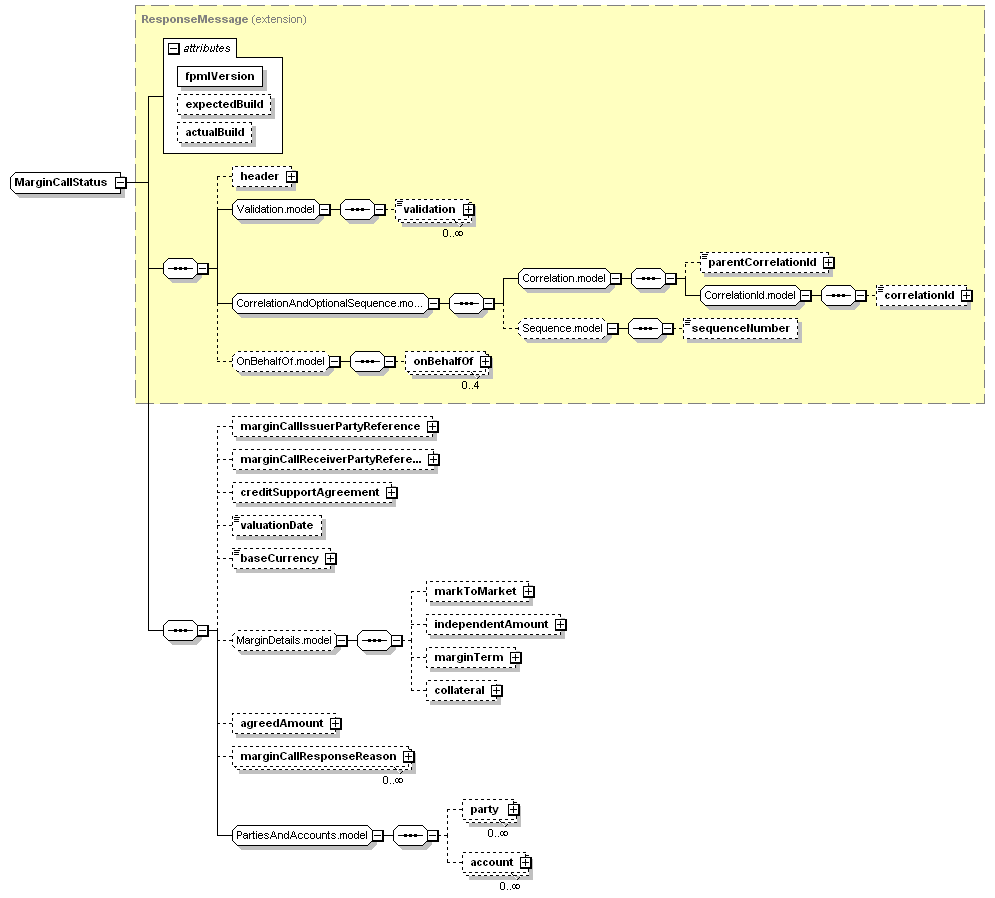 <xsd:complexType name="MarginCallStatus"> <xsd:complexContent> <xsd:sequence> <xsd:element maxOccurs="unbounded" minOccurs="0" name="marginCallResponseReason" type="MarginCallResponseReason"/> </xsd:sequence> </xsd:extension> </xsd:complexContent> </xsd:complexType> |