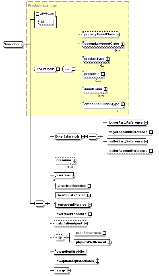 | <xsd:complexType name="Swaption"> <xsd:complexContent> <xsd:sequence> <xsd:choice minOccurs="0"> </xsd:choice> </xsd:sequence> </xsd:extension> </xsd:complexContent> </xsd:complexType> |