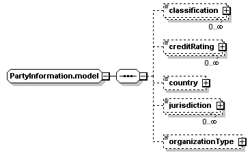 | <xsd:group name="PartyInformation.model"> <xsd:sequence> <xsd:element maxOccurs="unbounded" minOccurs="0" name="classification" type="IndustryClassification"/> </xsd:sequence> </xsd:group> |