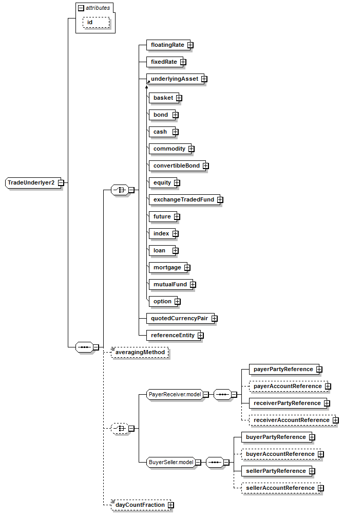 <xsd:complexType name="TradeUnderlyer2"> <xsd:sequence> <xsd:choice> </xsd:choice> <xsd:choice minOccurs="0"> </xsd:choice> </xsd:sequence> <xsd:attribute name="id" type="xsd:ID"/> </xsd:complexType> |