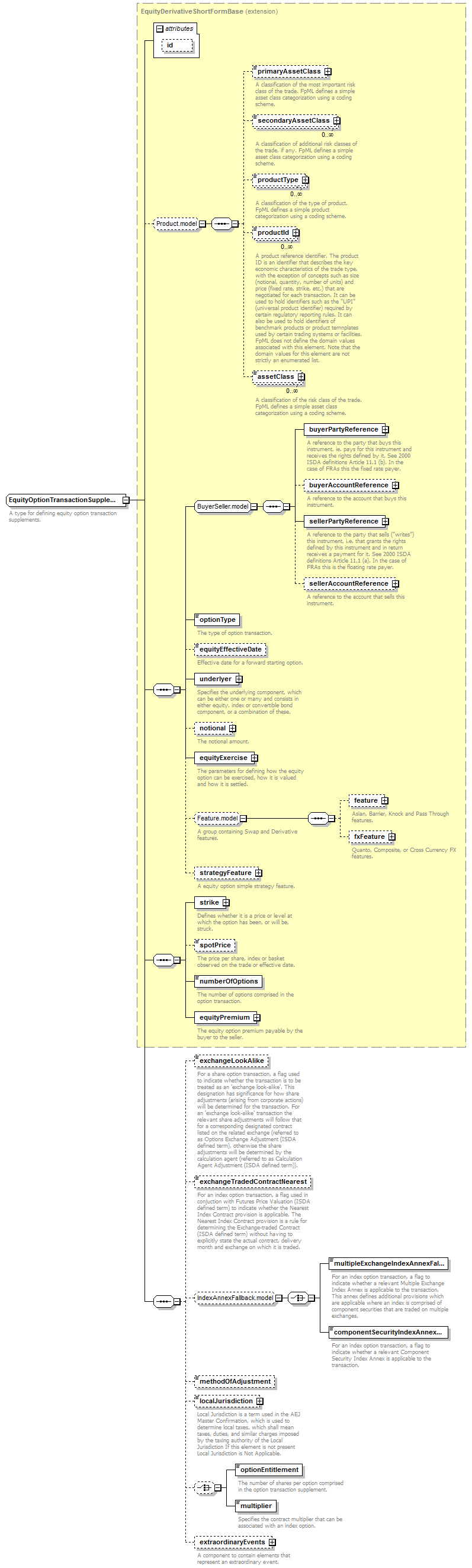 | <xsd:complexType name="EquityOptionTransactionSupplement"> <xsd:complexContent> <xsd:sequence> <xsd:choice minOccurs="0"> </xsd:choice> </xsd:sequence> </xsd:extension> </xsd:complexContent> </xsd:complexType> |