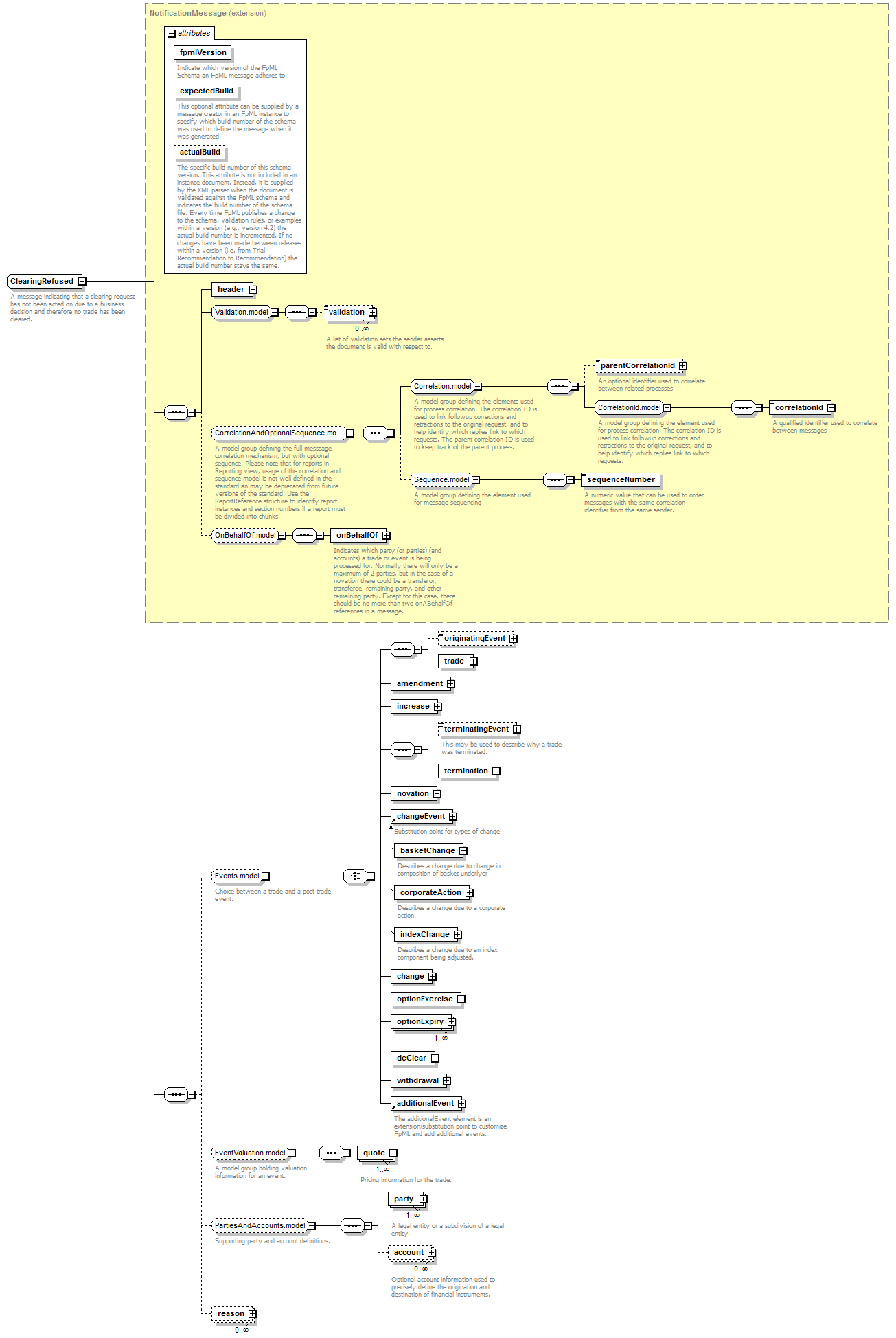 <xsd:complexType name="ClearingRefused"> <xsd:complexContent> <xsd:sequence> </xsd:sequence> </xsd:extension> </xsd:complexContent> </xsd:complexType> |