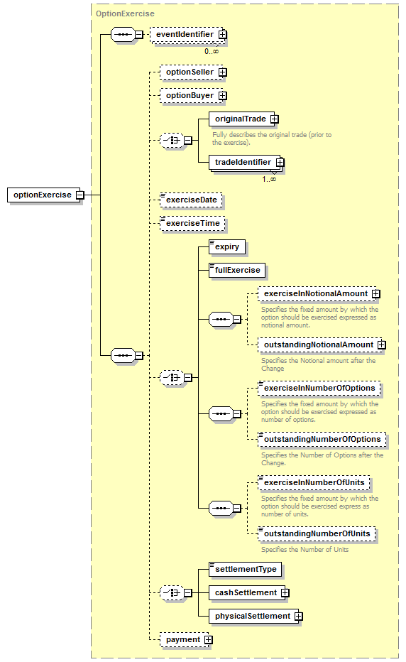 eventIdentifier*, optionSeller?, optionBuyer?, (originalTrade | tradeIdentifier+)?, exerciseDate?, exerciseTime?, (expiry | fullExercise | (exerciseInNotionalAmount?, outstandingNotionalAmount?) | (exerciseInNumberOfOptions?, outstandingNumberOfOptions?) | (exerciseInNumberOfUnits?, outstandingNumberOfUnits?))?, (settlementType | cashSettlement | physicalSettlement)?, payment?