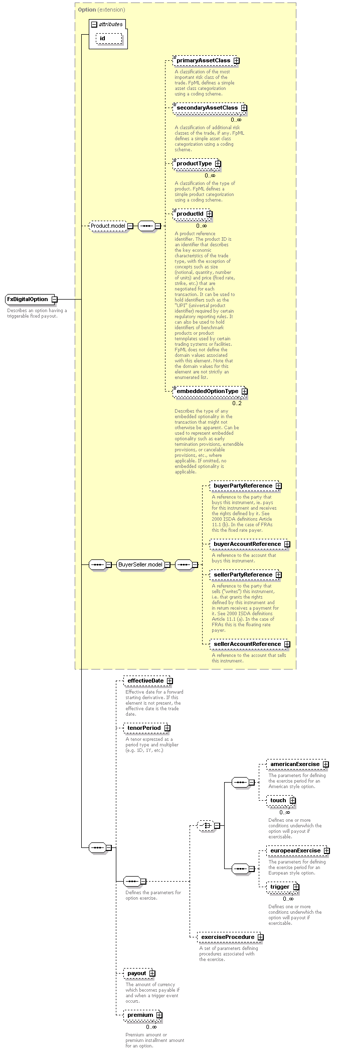 <xsd:complexType name="FxDigitalOption"> <xsd:complexContent> <xsd:sequence> <xsd:sequence> <xsd:choice minOccurs="0"> <xsd:sequence> </xsd:sequence> <xsd:sequence> </xsd:sequence> </xsd:choice> </xsd:sequence> </xsd:sequence> </xsd:extension> </xsd:complexContent> </xsd:complexType> |