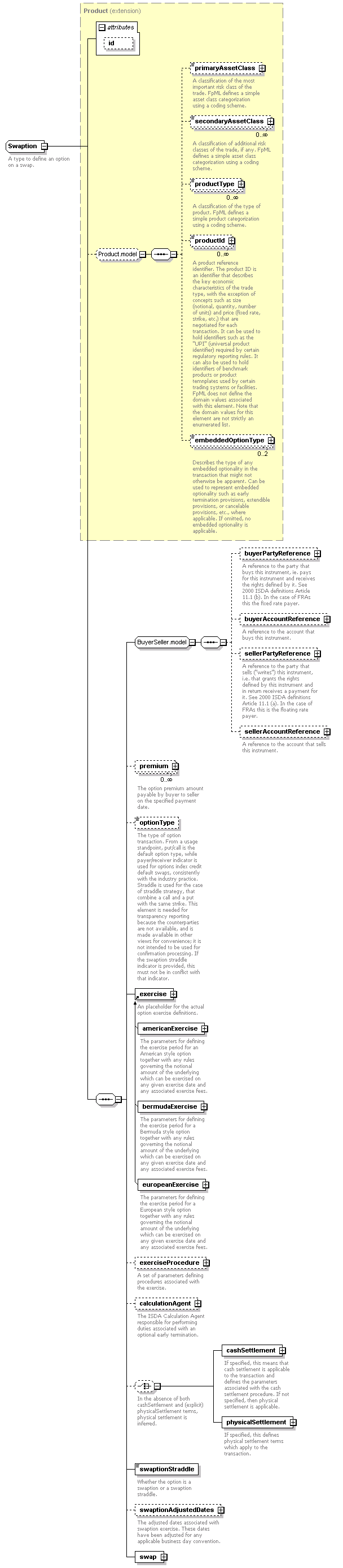 | <xsd:complexType name="Swaption"> <xsd:complexContent> <xsd:sequence> <xsd:choice minOccurs="0"> </xsd:choice> </xsd:sequence> </xsd:extension> </xsd:complexContent> </xsd:complexType>  |
