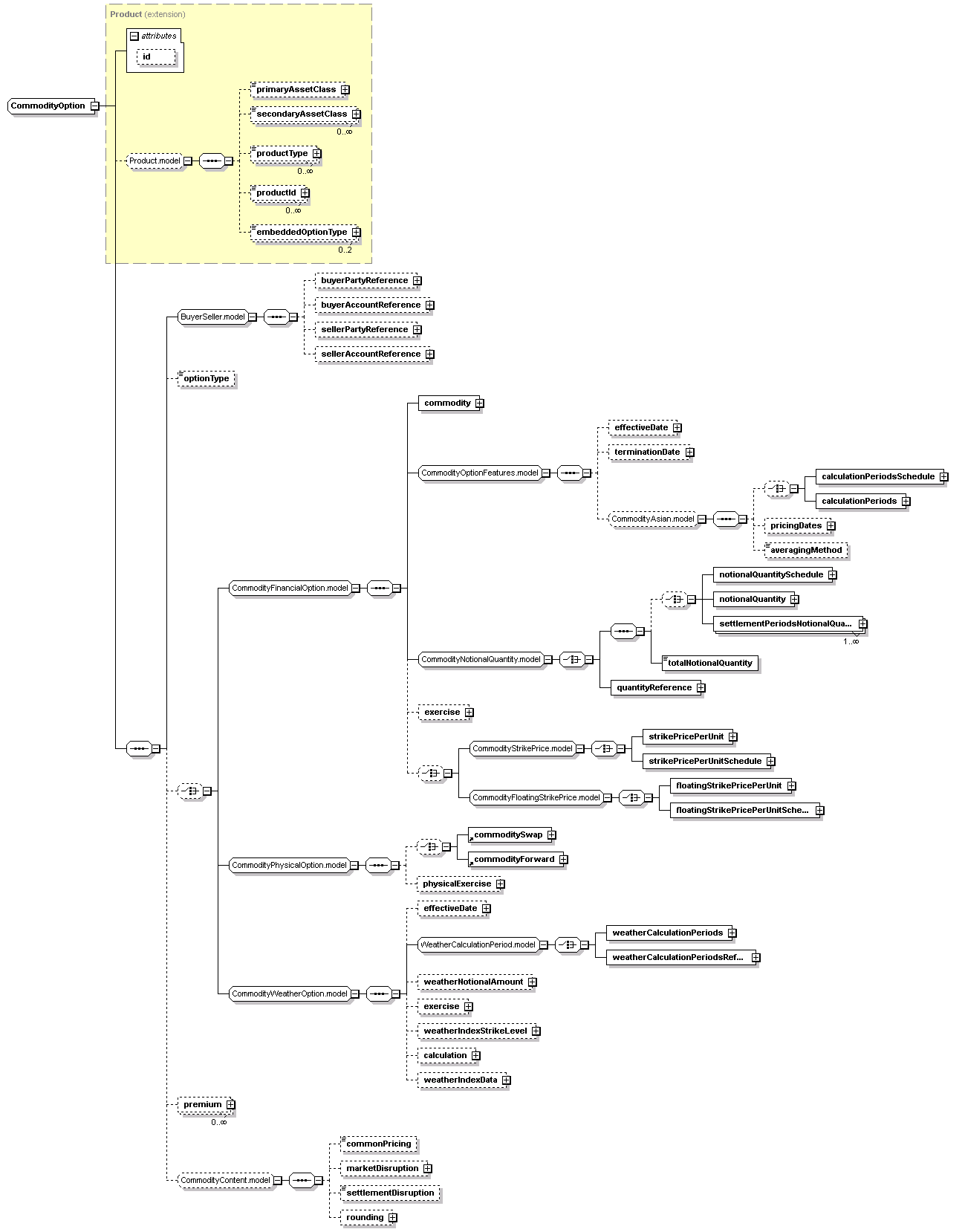 <xsd:complexType name="CommodityOption"> <xsd:complexContent> <xsd:sequence> <xsd:choice minOccurs="0"> </xsd:choice> </xsd:sequence> </xsd:extension> </xsd:complexContent> </xsd:complexType> |