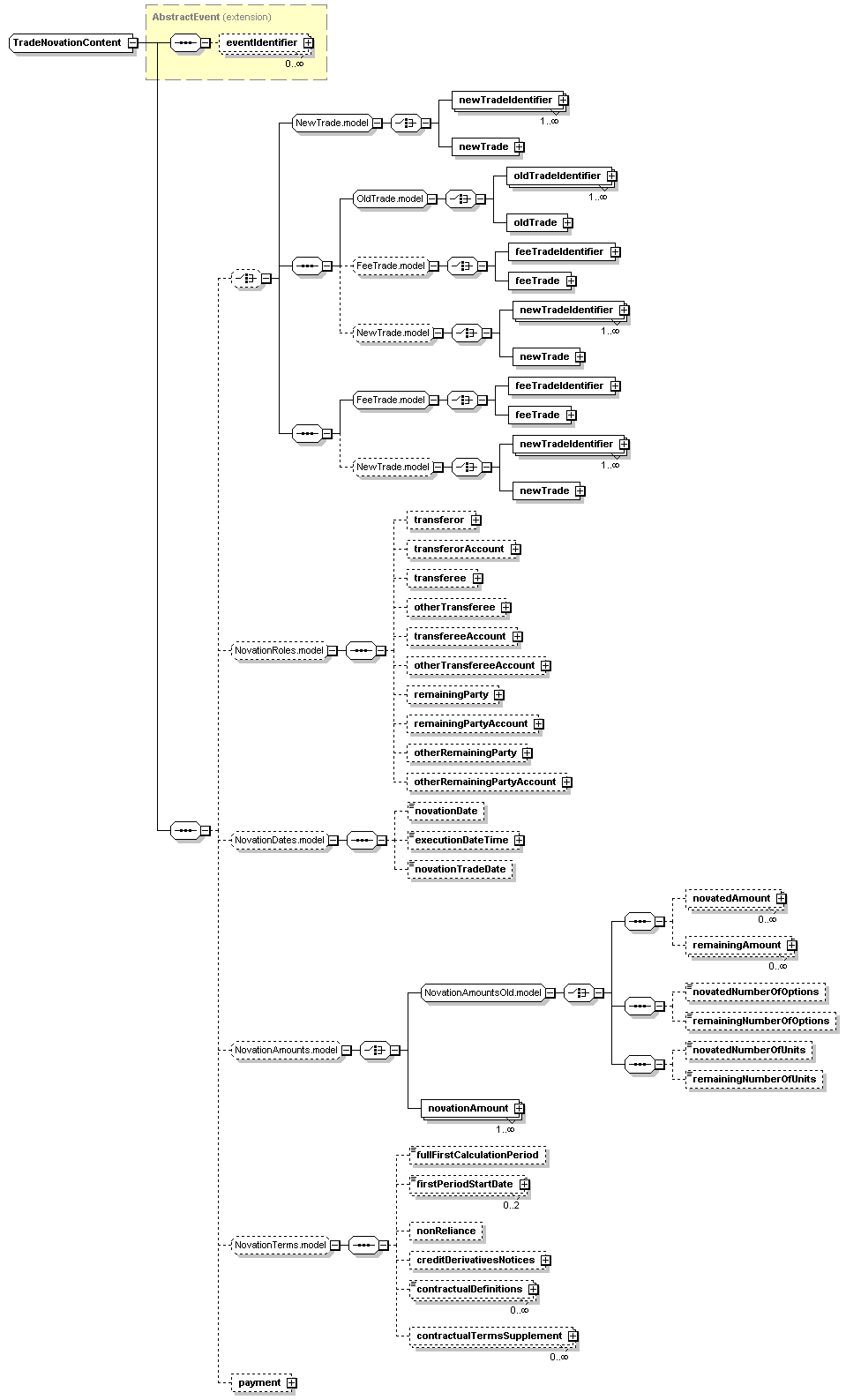 | <xsd:complexType name="TradeNovationContent"> <xsd:complexContent> <xsd:sequence> <xsd:choice minOccurs="0"> <!--View Generation: Removed a degenerate choice.--> <xsd:sequence> </xsd:sequence> <xsd:sequence> </xsd:sequence> </xsd:choice> </xsd:sequence> </xsd:extension> </xsd:complexContent> </xsd:complexType> |