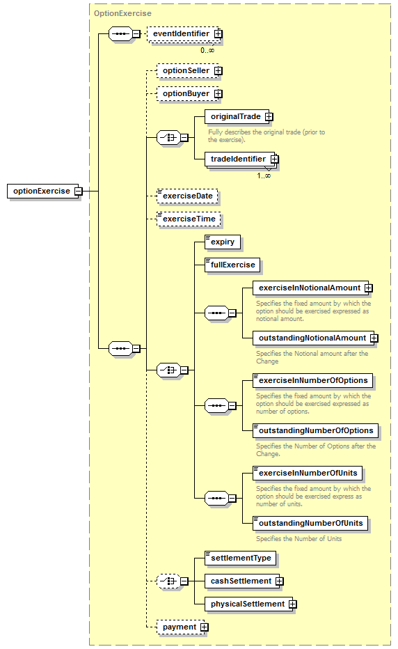 eventIdentifier*, optionSeller?, optionBuyer?, (originalTrade | tradeIdentifier+), exerciseDate?, exerciseTime?, (expiry | fullExercise | (exerciseInNotionalAmount, outstandingNotionalAmount) | (exerciseInNumberOfOptions, outstandingNumberOfOptions) | (exerciseInNumberOfUnits, outstandingNumberOfUnits)), (settlementType | cashSettlement | physicalSettlement)?, payment?