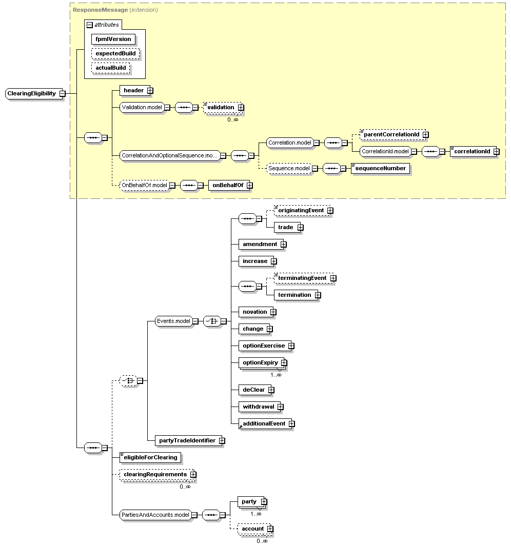 <xsd:complexType name="ClearingEligibility"> <xsd:complexContent> <xsd:sequence> <xsd:choice minOccurs="0"> </xsd:choice> <xsd:element maxOccurs="unbounded" minOccurs="0" name="clearingRequirements" type="ClearingRequirements"/> </xsd:sequence> </xsd:extension> </xsd:complexContent> </xsd:complexType> |