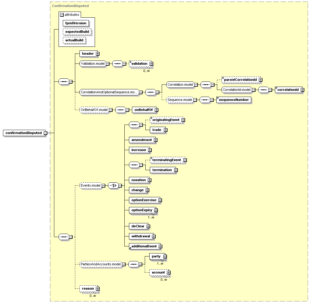 header, validation*, parentCorrelationId?, correlationId, sequenceNumber?, onBehalfOf?, ((originatingEvent?, trade) | amendment | increase | (terminatingEvent?, termination) | novation | change | optionExercise | optionExpiry+ | deClear | withdrawal | additionalEvent)?, (party+, account*)?, reason*