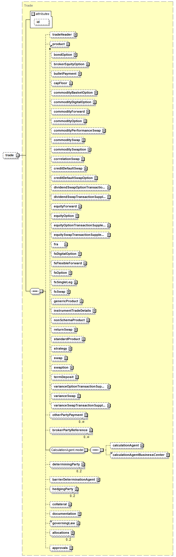 bondOption, brokerEquityOption, bulletPayment, capFloor, commodityBasketOption, commodityDigitalOption, commodityForward, commodityOption, commodityPerformanceSwap, commoditySwap, commoditySwaption, correlationSwap, creditDefaultSwap, creditDefaultSwapOption, dividendSwapOptionTransactionSupplement, dividendSwapTransactionSupplement, equityForward, equityOption, equityOptionTransactionSupplement, equitySwapTransactionSupplement, fra, fxDigitalOption, fxFlexibleForward, fxOption, fxSingleLeg, fxSwap, genericProduct, instrumentTradeDetails, nonSchemaProduct, returnSwap, standardProduct, strategy, swap, swaption, termDeposit, varianceOptionTransactionSupplement, varianceSwap, varianceSwapTransactionSupplement