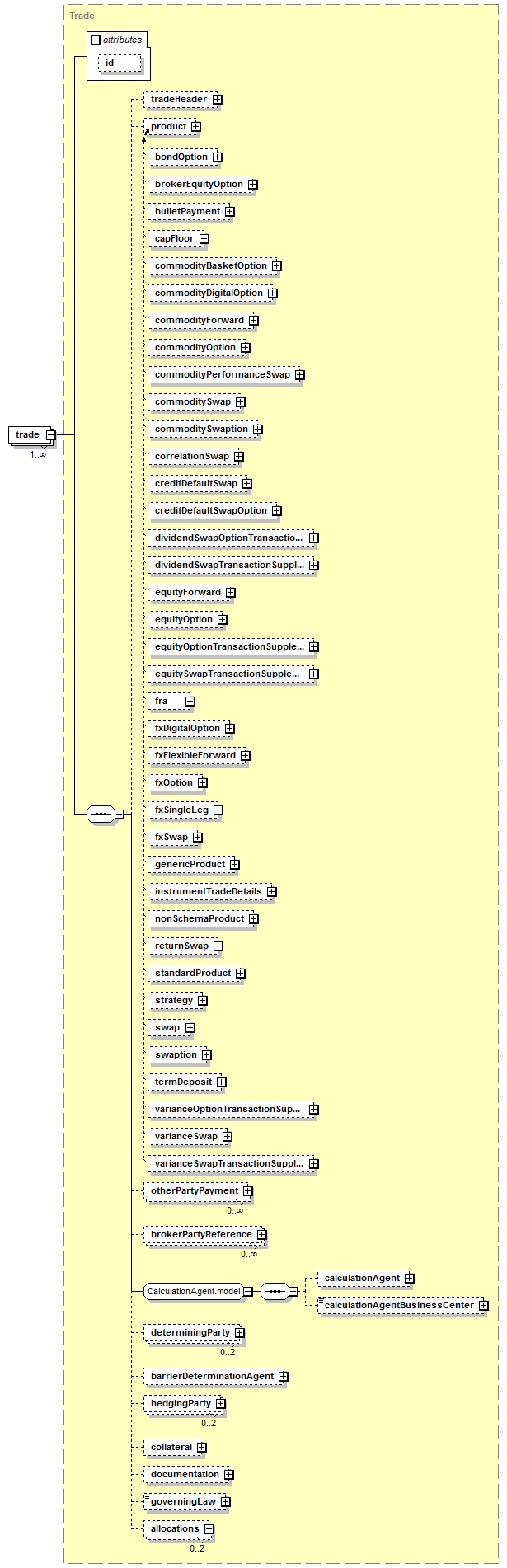 bondOption, brokerEquityOption, bulletPayment, capFloor, commodityBasketOption, commodityDigitalOption, commodityForward, commodityOption, commodityPerformanceSwap, commoditySwap, commoditySwaption, correlationSwap, creditDefaultSwap, creditDefaultSwapOption, dividendSwapOptionTransactionSupplement, dividendSwapTransactionSupplement, equityForward, equityOption, equityOptionTransactionSupplement, equitySwapTransactionSupplement, fra, fxDigitalOption, fxFlexibleForward, fxOption, fxSingleLeg, fxSwap, genericProduct, instrumentTradeDetails, nonSchemaProduct, returnSwap, standardProduct, strategy, swap, swaption, termDeposit, varianceOptionTransactionSupplement, varianceSwap, varianceSwapTransactionSupplement