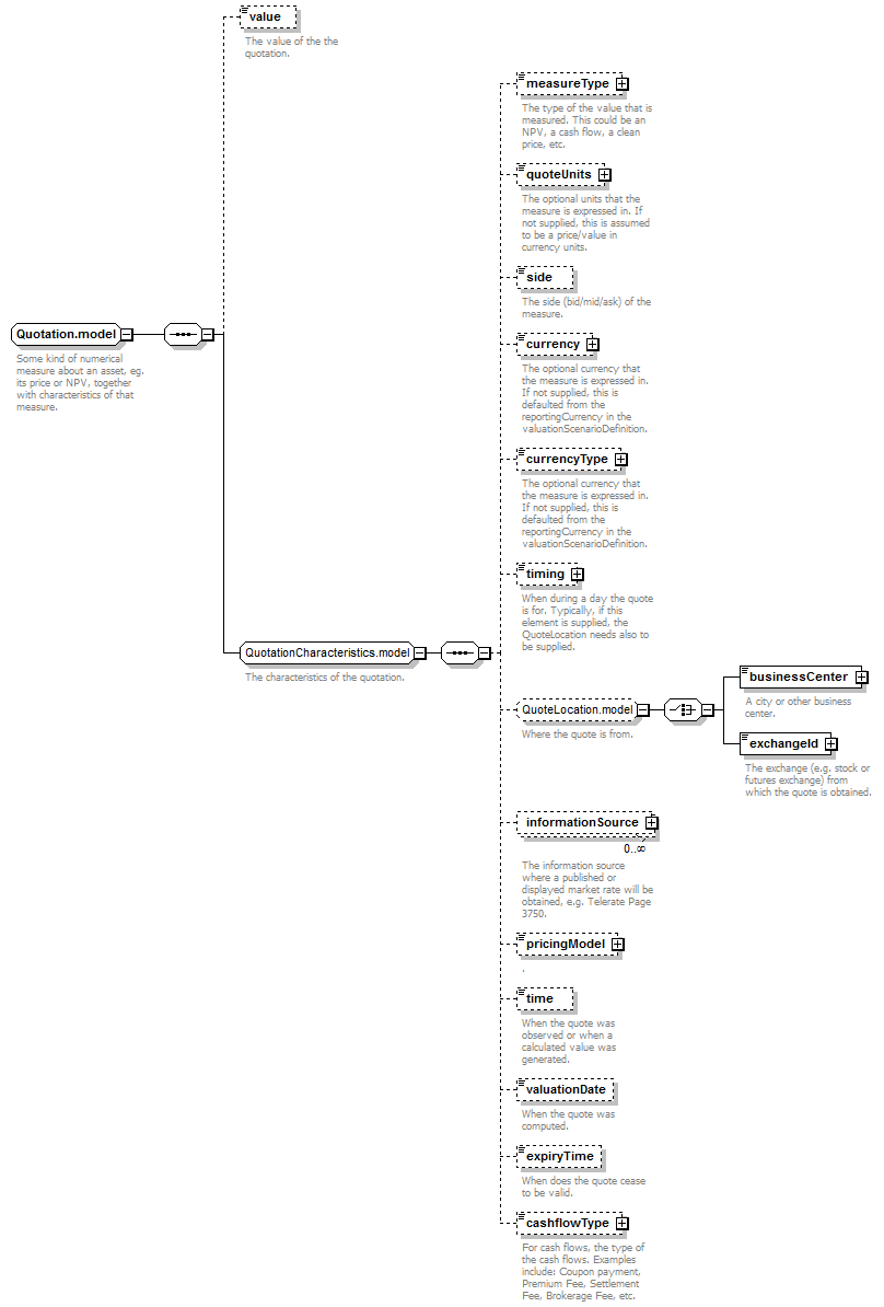value?, measureType?, quoteUnits?, side?, currency?, currencyType?, timing?, (businessCenter | exchangeId)?, informationSource*, pricingModel?, time?, valuationDate?, expiryTime?, cashflowType?