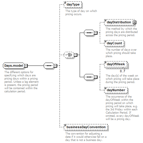 dayType?, ((dayDistribution?, dayCount?) | (dayOfWeek[0..7], dayNumber?))?, businessDayConvention? |