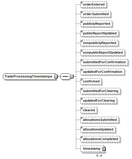 orderEntered?, orderSubmitted?, publiclyReported?, publicReportUpdated?, nonpubliclyReported?, nonpublicReportUpdated?, submittedForConfirmation?, updatedForConfirmation?, confirmed?, submittedForClearing?, updatedForClearing?, cleared?, allocationsSubmitted?, allocationsUpdated?, allocationsCompleted?, timestamp* |